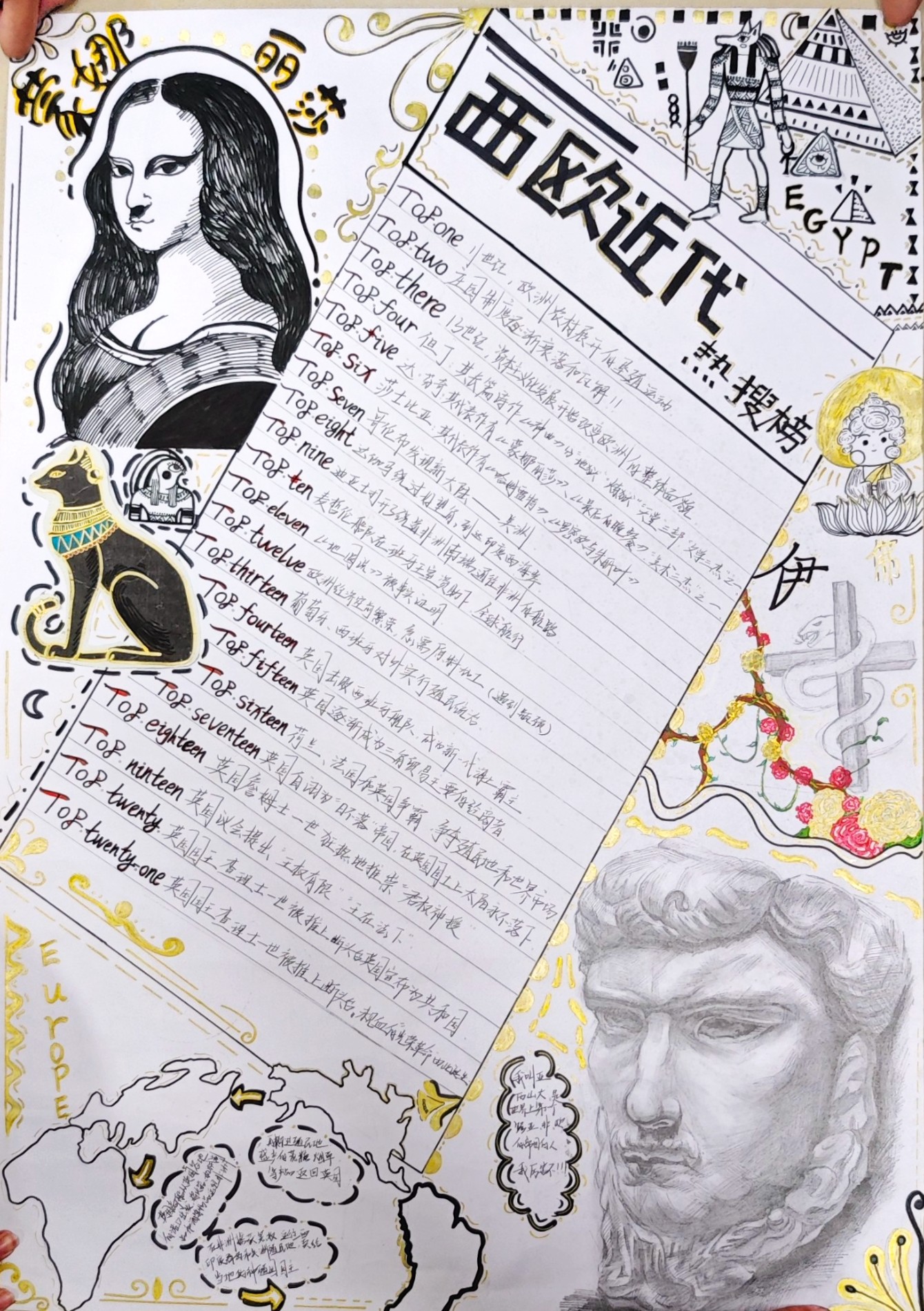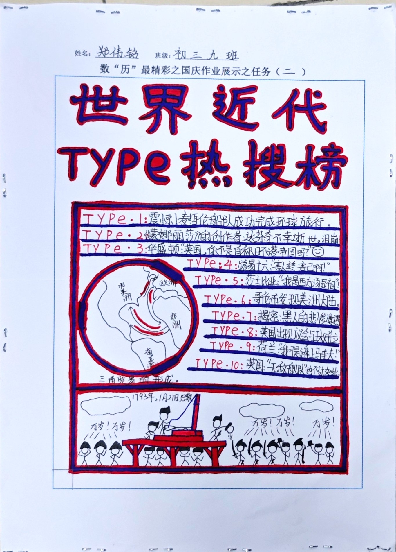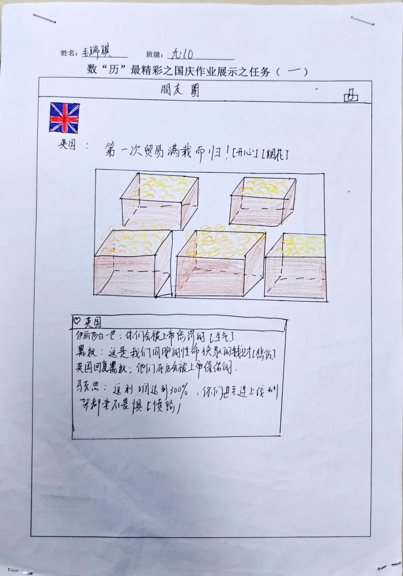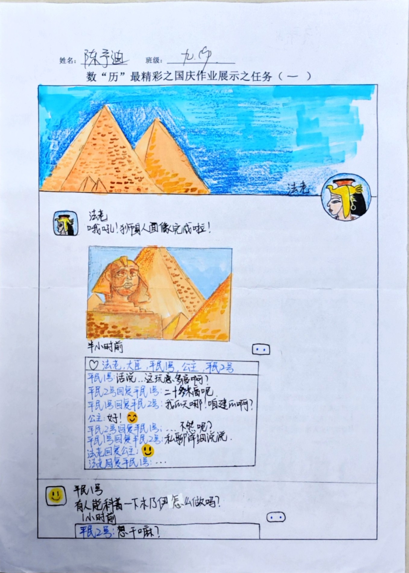 在这些特别的作业项目中,每一位同学都化身为小小历史学家兼艺术家,穿梭于古今,从浩瀚的历史长河中汲取灵感,将那些或辉煌、或悲壮的历史瞬间,巧妙融入一张张独一无二的A4纸中。有的作品描摹了波澜壮阔的历史事件,用细腻的笔触勾勒出历史长河中的风风雨雨,让我们感受世事的沧桑变化;有的则聚焦于璀璨的文明遗迹,通过精美的图案和文字注解,让我们仿佛穿越时空,亲眼见证那些灿烂文明的辉煌与衰落;也有作品以历史人物为主题,浮现出一个又一个鲜活的面孔,让我们从微观的个体视角感受历史的深邃。