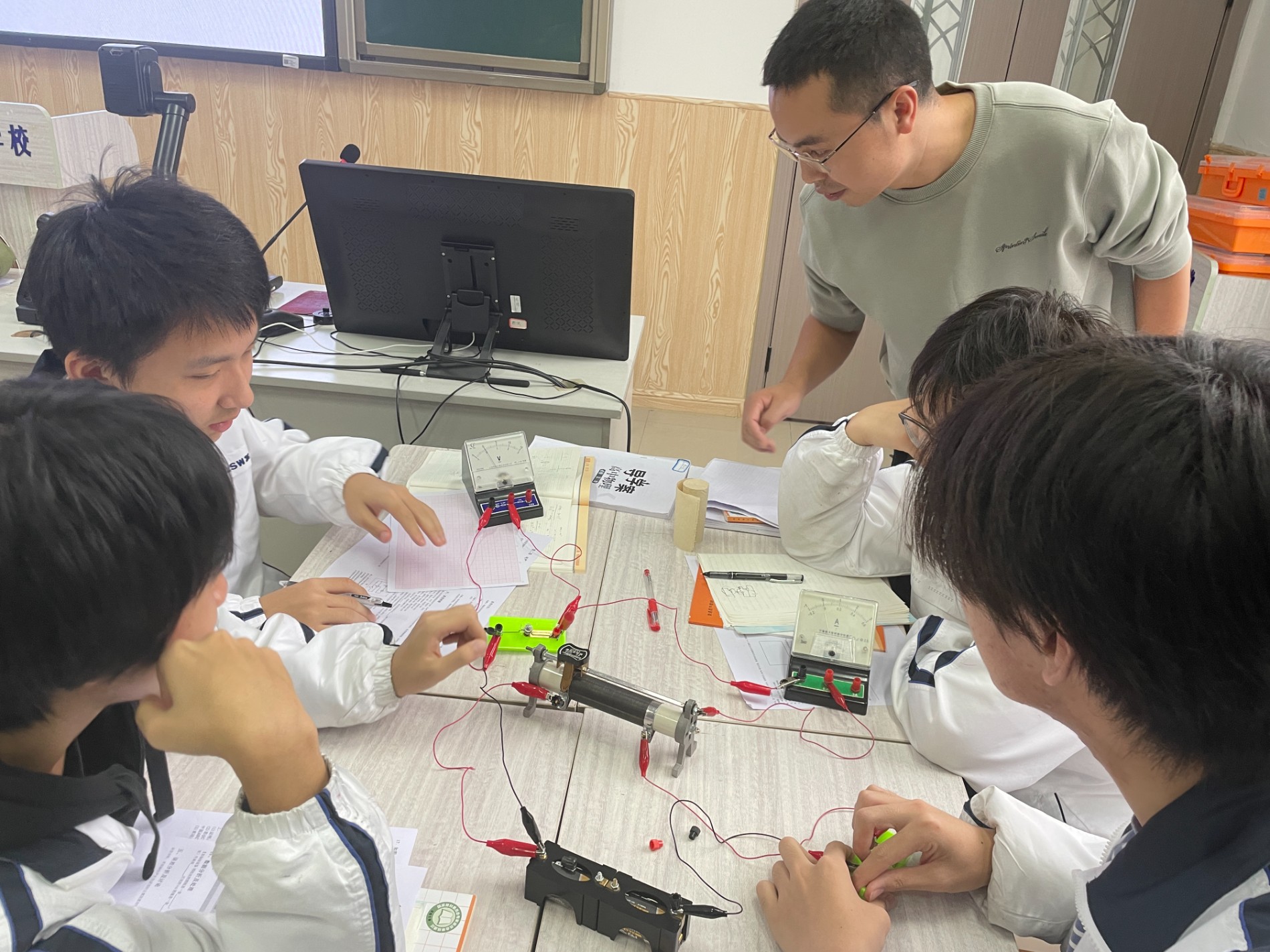 朱老师善于抓住学生兴趣所在,利用分组实验激发学生兴趣,充分发挥学生的主观能动性,适时引导学生主动参与到课堂教学中,自主构建学习框架,调动学习积极性。朱老师由最近发生的时政切入,引入课堂,体现了物理知识从“从生活中来,又回归社会”的教学理念。教学过程中注重引导学生如何学如何做,目的是帮助学生学习,教学目标明确,学案切合学生实际,辅以合理严谨的数学推导,让学生知道知识的来龙去脉,真正理解其中的道理,并且内化吸收,课堂生成明显,使学生真正“动”起来。整堂课实验和理论相结合,学生受益匪浅。