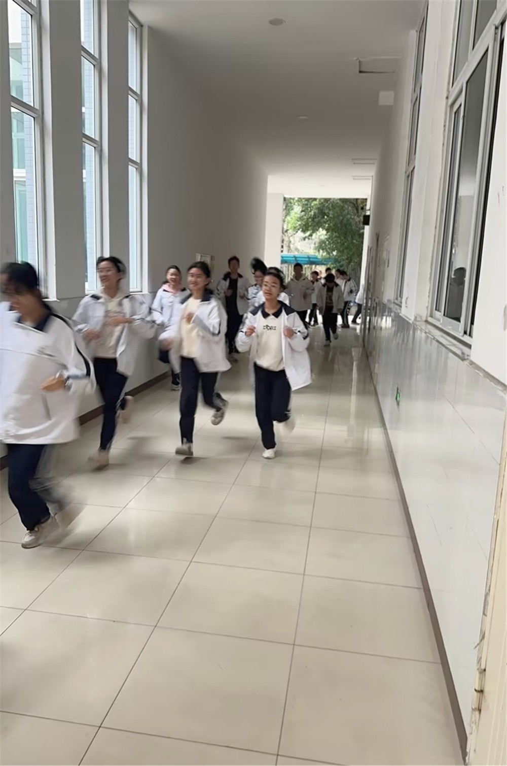 演练开始,警报拉响,警情就是命令,知识守护生命!全体师生临危不乱,安全高效地撤离了教学楼险情区域,各区域负责人迅速到位引导。全程秩序井然,忙而不乱,5分钟后全体师生安全撤离到了操场指定位置,各年级迅速清点人数,并报告应急处理中心。