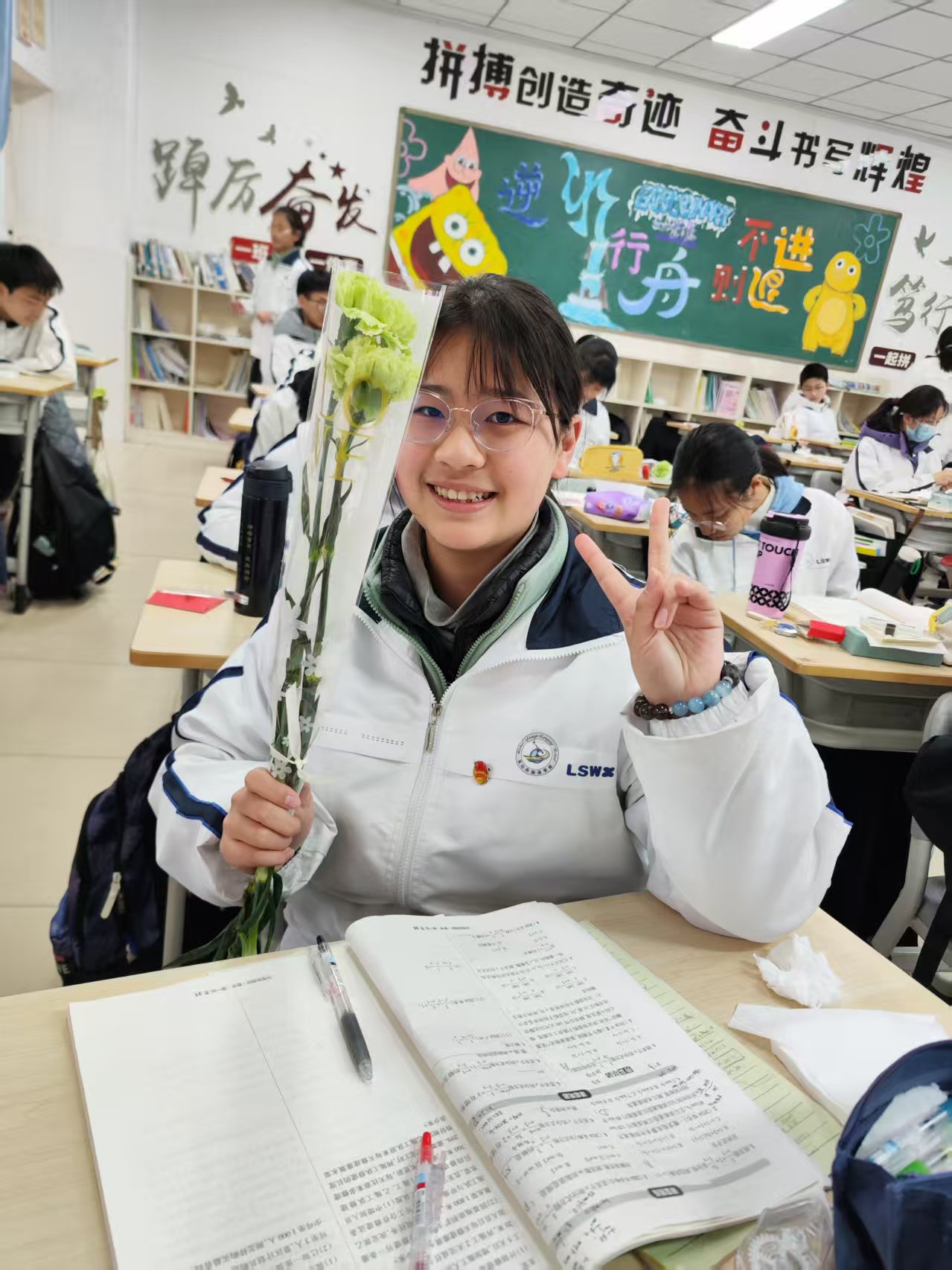 大课间时分,学生们有序领取花束,在特设的留言墙前驻足书写。彩笔勾勒出暖心话语,字里行间流淌着对母爱的深切感悟,整个学校洋溢着欢乐与温馨的氛围。