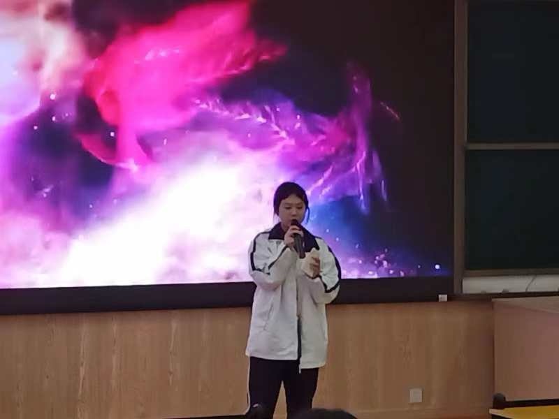 比赛在学校阶梯教室隆重举行,由初一3班陈芊如、刘瀚之两位同学主持,现场气氛热烈,座无虚席。