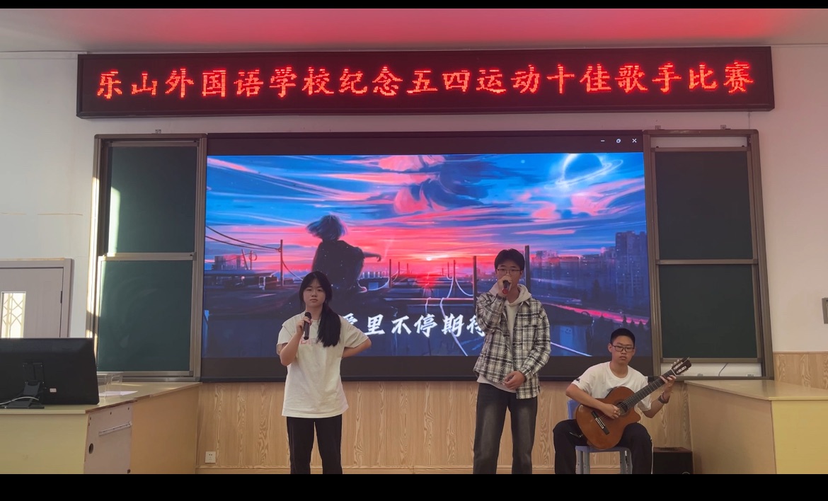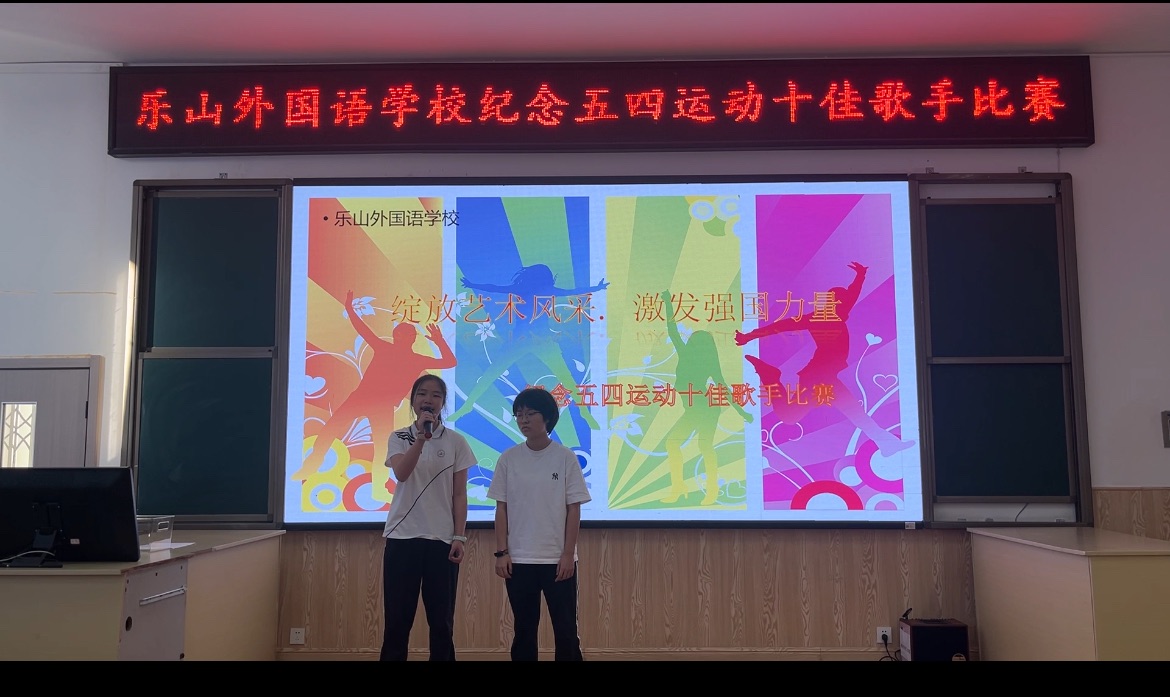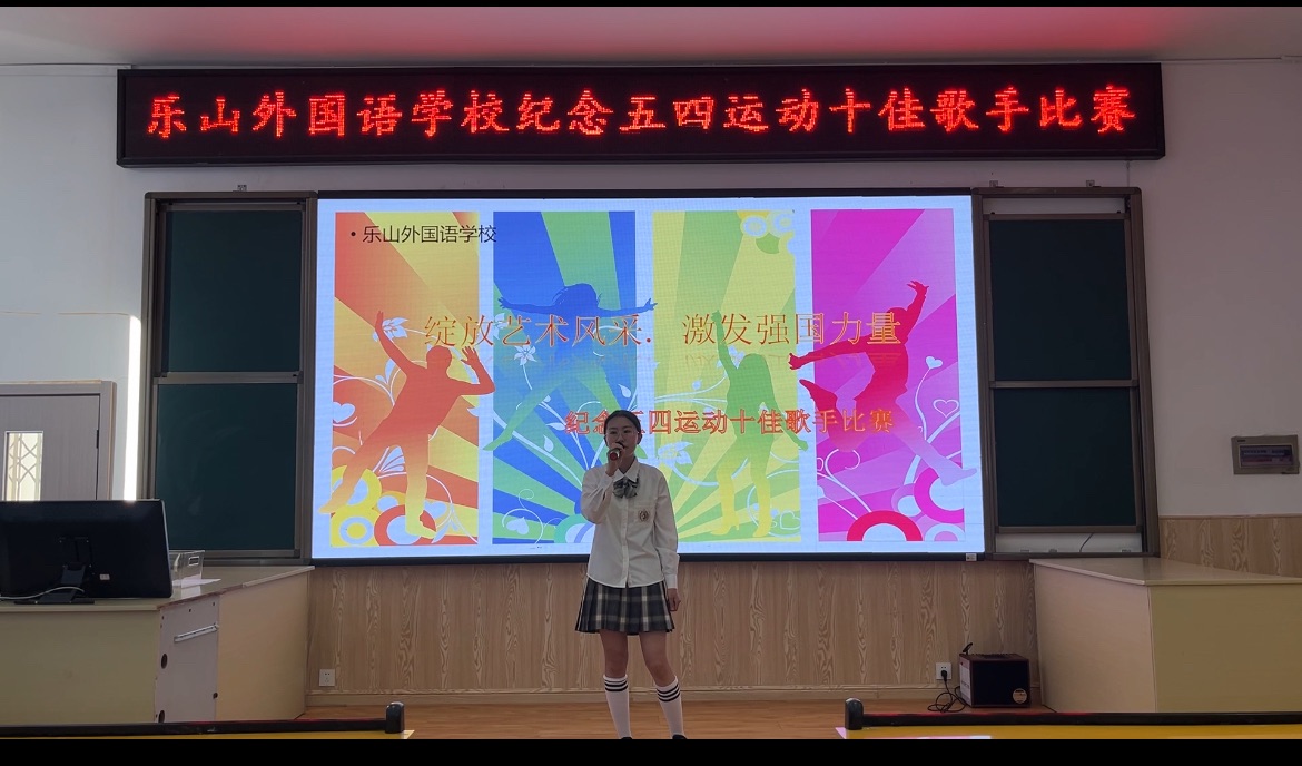 春日,是生命的象征,是希望的田野。正如五四精神所蕴含的无限活力与创造力,它激励着一代又一代中国青年勇往直前,不断探索未知,追求真理。在纪念五四运动105周年即将到来之际,为弘扬五四精神、激发青年学子的爱国情怀与奋斗之志,乐山外国语学校团委、艺体部于4月17日成功举办了以"绽放艺术风采,激发强国力量"为主题的校园十佳歌手大赛。此次活动也是我校第十九届艺术节系列活动之一,不仅为学生们提供了一个展示自我、施展才华的舞台,更通过音乐艺术的形式,传递了青春正能量,展现了新时代青年昂扬向上的精神风貌,将青春激情与家国情怀融合,为传承五四精神注入了鲜活的时代内涵。