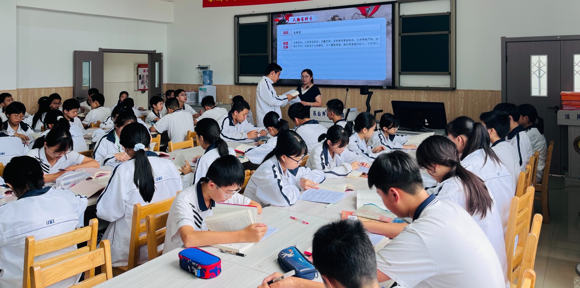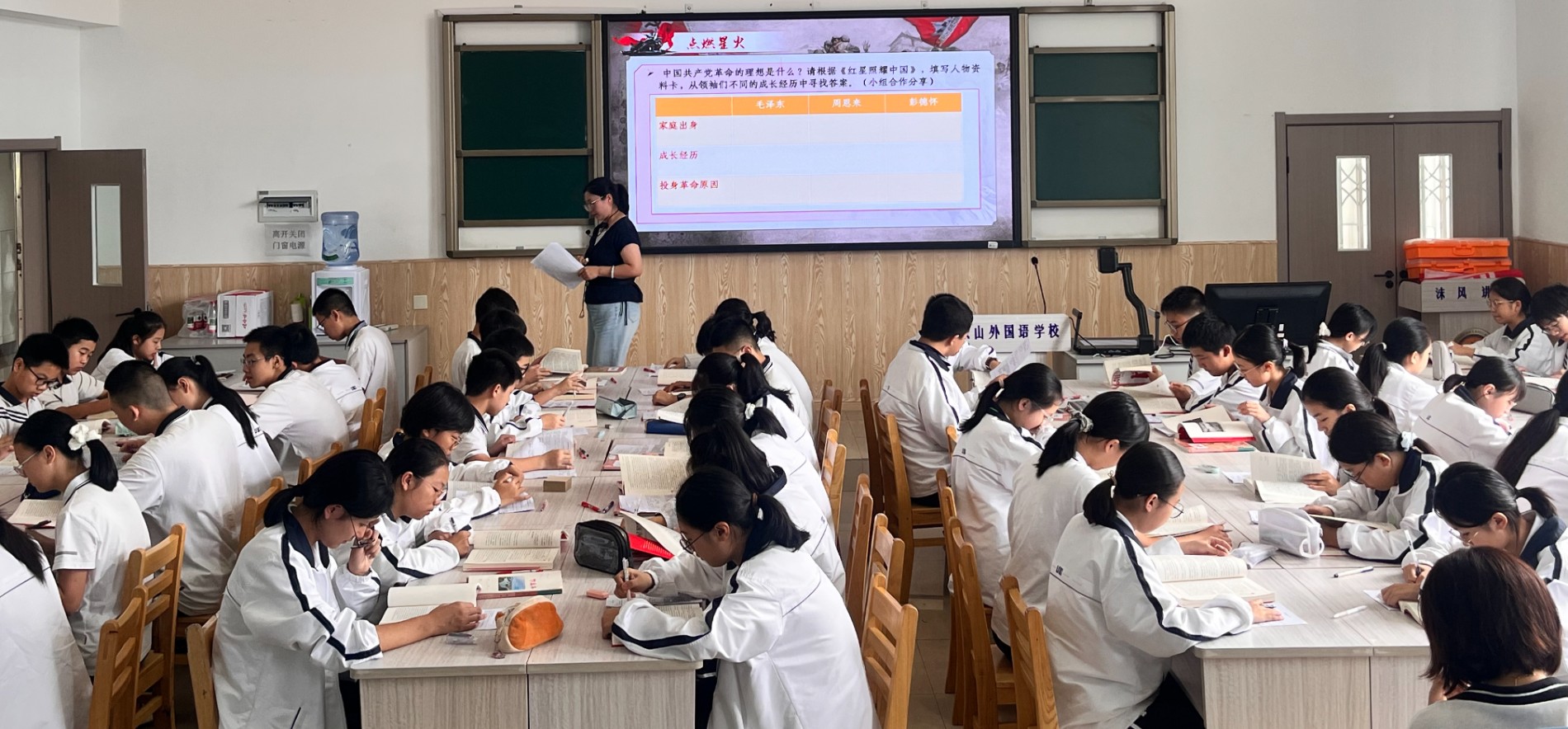 初二年级江红老师与15班学生共同呈现《星星之火,可以燎原》——《红星照耀中国》整本书阅读教学展示课。课堂以革命领袖的成长经历为线索,引导学生在人物资料卡的梳理中理解革命理想的树立,在“红区”与“白区”的对比中探寻“星星之火何以燎原”的深层动因。整节课注重学生主体地位的发挥,在平等、开放的对话中,实现知识的渐进生成与思维的双向碰撞。