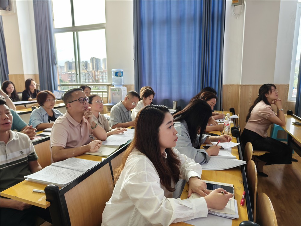 最后,杜枭宇聚焦“校园安全工作”展开部署。他首先强调了安全工作的重要性,具体阐述了教师安全职责以及班主任附加安全职责;然后向老师们详细介绍了安全内容,尤其强调了学生欺凌、网络安全、心理健康和交通安全。他运用精简的语言,以多个实际案例,让老师们对每个安全内容熟知详记。他还向老师们分享了丰富的教育资源,方便大家在课余时间加强学习。最后,杜枭宇强调了突发事件处理流程,包括学生伤害事故、火灾事故、自然灾害及校园暴力或外来侵害。在总结发言里,他再次强调安全工作没有“旁观者”,防欺凌守护学生人格尊严,防电诈守护家庭财产安全,心理关怀与通校生管理则是安全防线的重要延伸,希望大家以“时时放心不下”的责任感,把各项要求落细落实,用我们的努力为学生筑牢安全成长屏障。