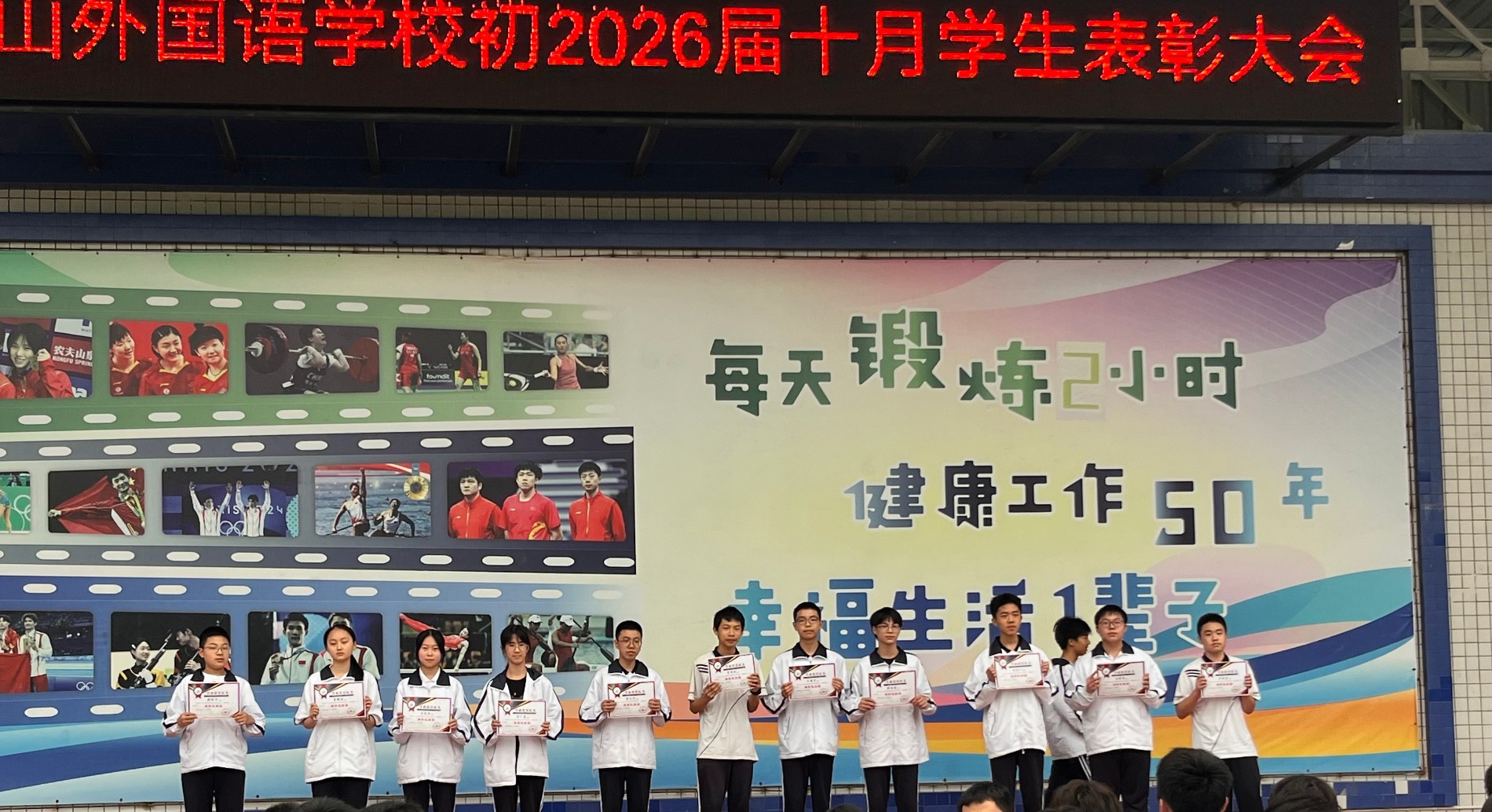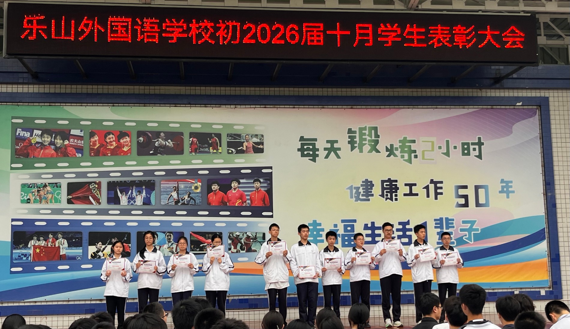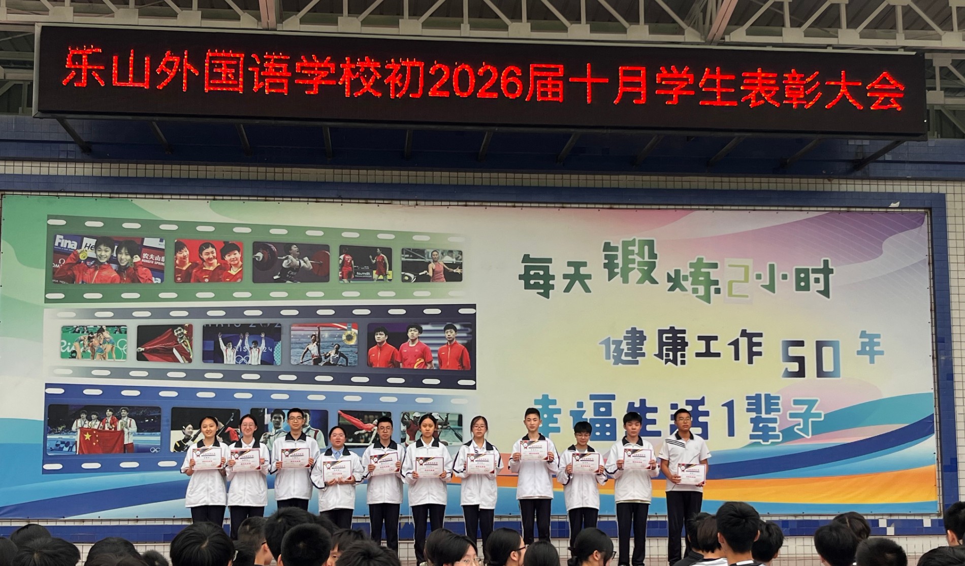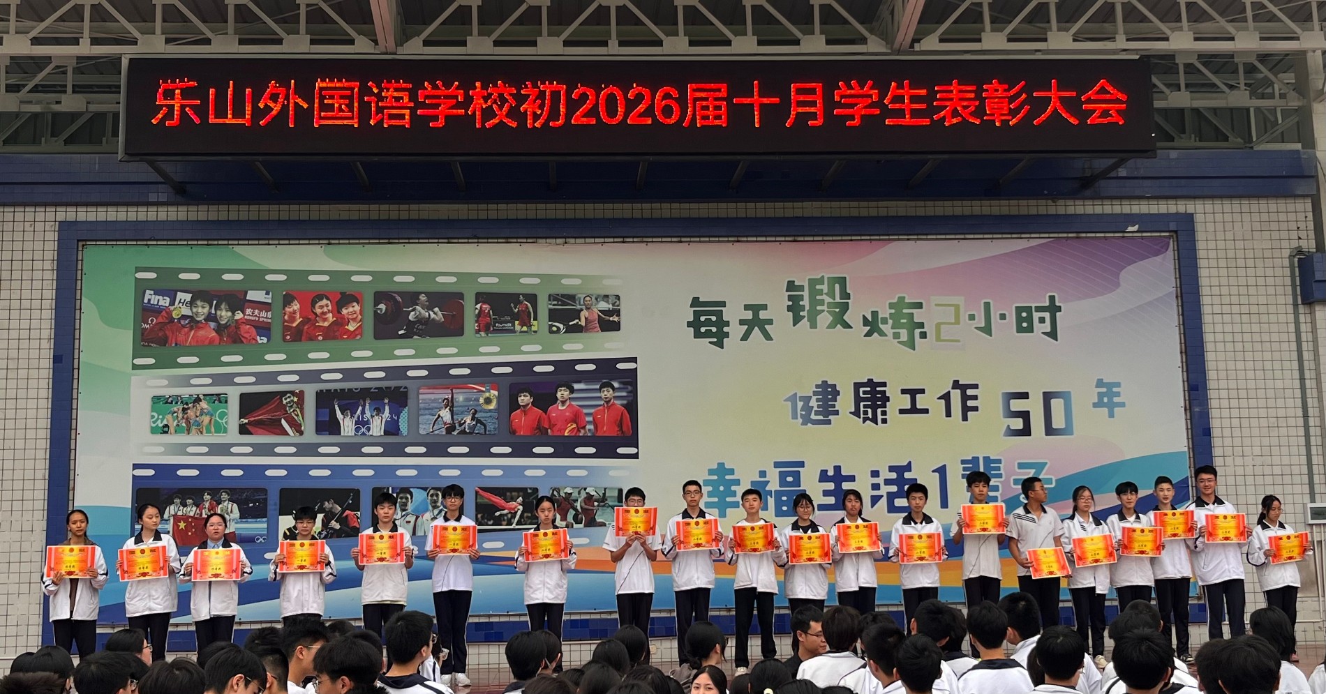 秋日胜春朝,奋进正当时。10月16日下午,乐山外国语学校初三学子在运动场举行了以“金秋砺剑凝共识,逐梦笃行启新程”为主题的学生大会。本次大会由年级组长廖艳主持,旨在表扬先进,树立榜样,激励全体同学在新学期里脚踏实地,砥砺前行。