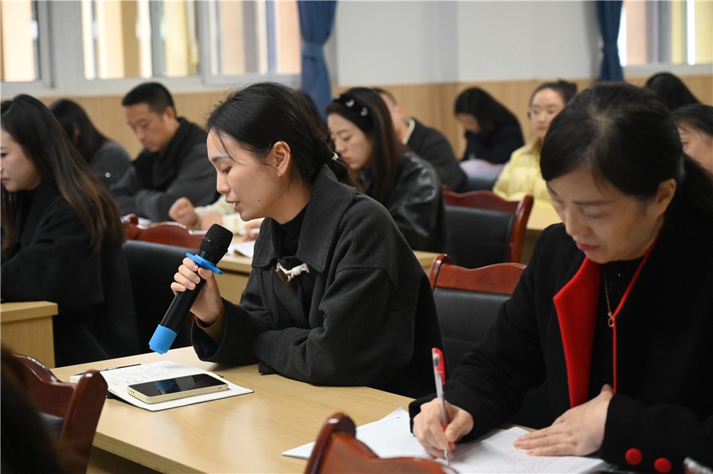 滟小六年级备课组长熊珍秀老师发言,全面详尽分享小学语文教学的做法。在日常教学中,以调考题型为导向系统开展能力训练——基础板块聚焦字词运用与句式转换,古诗文板块强化理解性背诵与情境运用,通过分层任务设计实现“夯实基础”与“适度延伸”的有机统一。